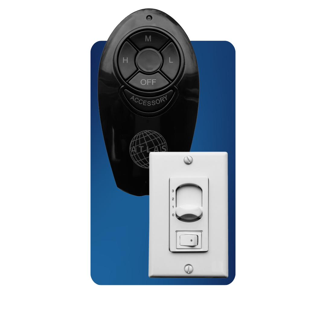 This setup allows both fans to be controlled together by one handheld remote (or wall control).